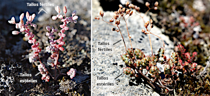 Sedum brevifolum desarrolla tallos fértiles. La organización histológica de los tallos fértiles es similar a la descrita hasta ahora, con la excepción de que sólo desarrollan un anillo de esclerénquima, y la epidermis multiseriada aparece en aquellas zonas en las que el anillo de esclerénquima está presente. Hay que tener en cuenta que los tallos fértiles aparecen sólo en la etapa de floración, mientras que los estériles pueden durar varios años. Es posible que los anillos de esclerénquima correspondan con anillos de crecimiento.